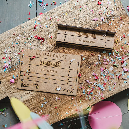 ¡Sorprende a alguien con una tarjeta regalo Mini Balkonbar Giftcard! Puedes elegir el valor de la tarjeta de regalo tú mismo.