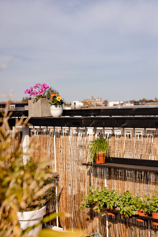 Al colocar el Balkonbar en el medio de la barandilla de tu balcón, sobresaldrá 15 cm a cada lado. El borde elevado te ofrecerá una buena prevención contra la caída de objetos. Sin embargo, ¡debes tener cuidado!