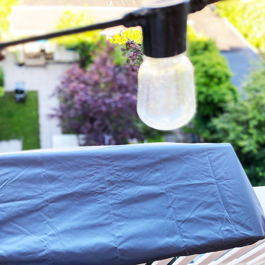La funda está hecha de poliéster y consta de un elástico, por lo que se ajusta a tu balkonbar. El material está recubierto dos veces y, por lo tanto, garantiza que su cubierta sea resistente al agua, retardante de llama y ofrezca protección contra los rayos UV.