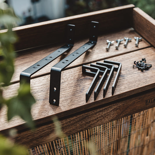 ¿Eres el reparador, el manitas o el máster del bricolaje? ¿Tienes algunas barras de madera en casa? ¿Te gustaría tener un Balkonbar con otra largura? Entonces, te recomendamos que compres nuestro Bracket Set.