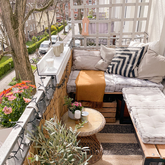 A tener en cuenta: el Mini Balkonbar solo es adecuado para barandillas de balcón rectangulares. Si tienes un tipo de barandilla diferente, elije nuestro Balkonbar estándar (90 x 30 cm).